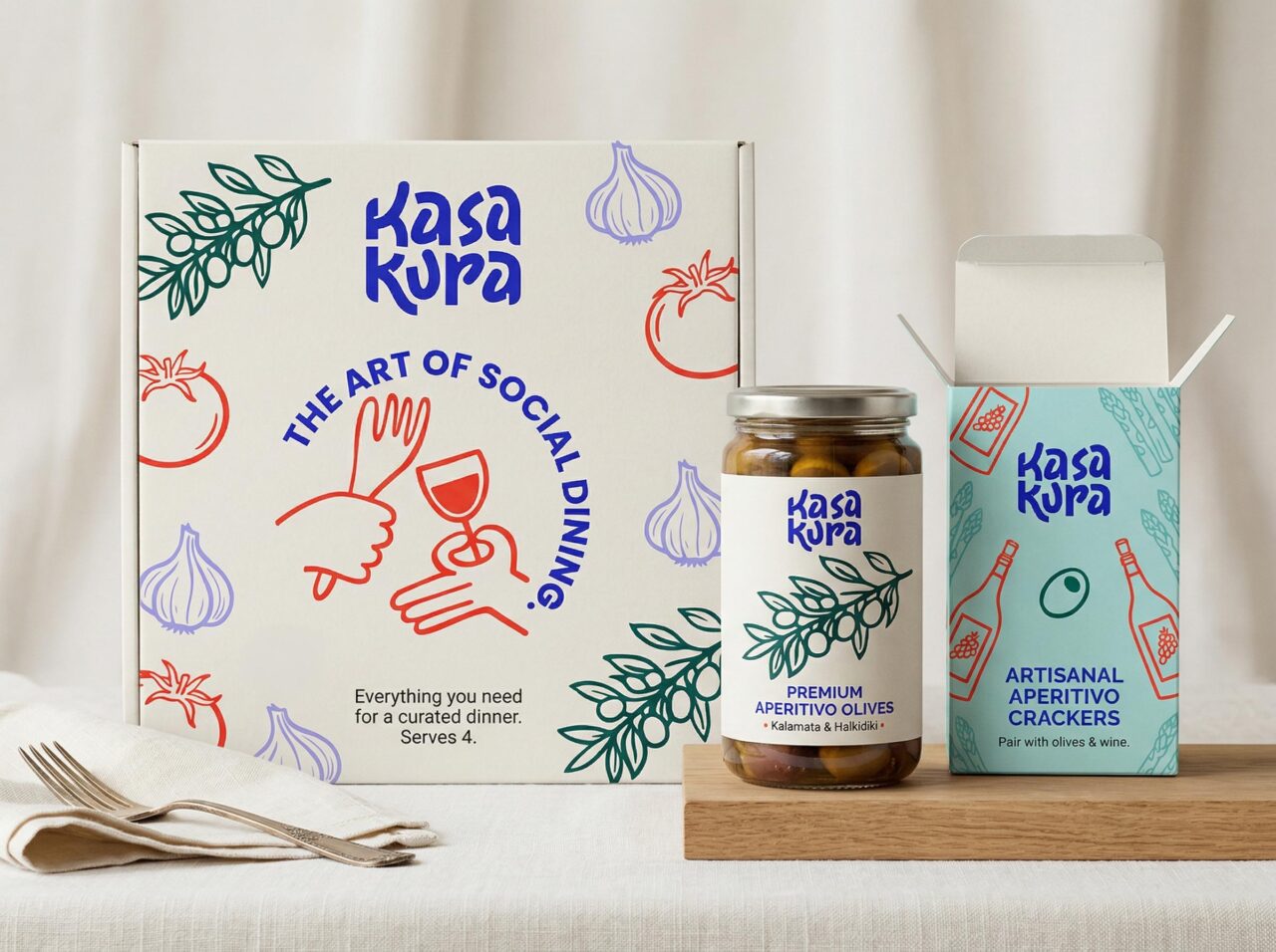 Kasa Kura – the art of social dining ist eine Kochschule in Hamburg, für die eine ganzheitliche Markenwelt entwickelt wurde. Ziel des Projekts war es, ein Brand Design zu schaffen, das weit über Kulinarik hinausgeht und den sozialen Charakter des Kochens sichtbar macht.